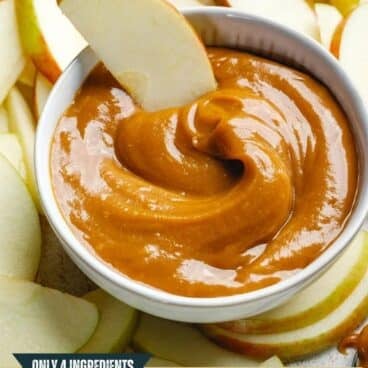 You won’t believe this caramel apple dip recipe until you taste it! Stir just four ingredients into a glossy peanut butter caramel that’s vegan and gluten-free. It’s so simple and the best healthy snack!