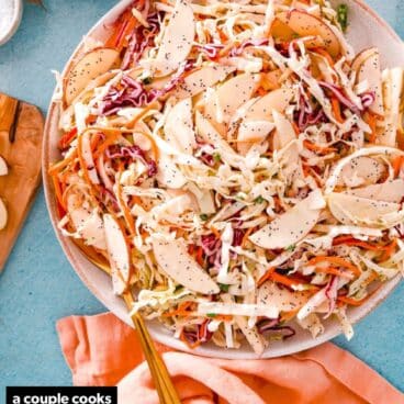 This apple slaw is a fun savory apple recipe that makes a big statement at the dinner table! Here are a few more apple recipes we love: