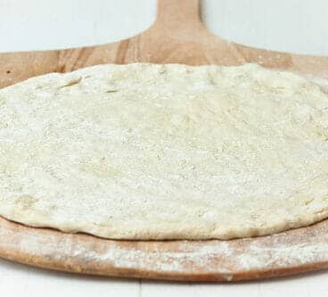 You’ll need a pizza peel to transfer the pizza in and out of the oven. To keep the dough from sticking, apply a thin layer of cornmeal or semolina before baking. My favorite pizza peel is the conveyor pizza peel because it makes it so easy to slide the dough onto the pizza stone. You won’t believe it until you see it in action!