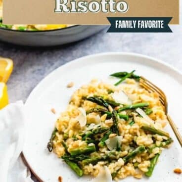 This asparagus risotto transforms simple ingredients into a creamy, luxurious dish! Roasted asparagus, zingy lemon and shaved Parmesan make a satisfying meal that’s perfect any night of the week.