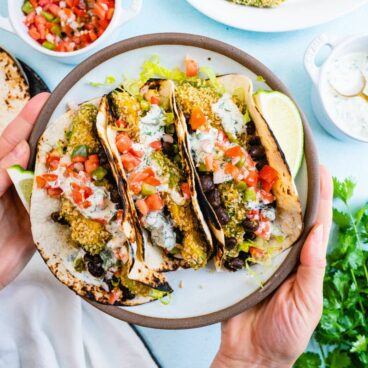 Last idea: instead of using these as a healthy side dish, you can serve these avocado fries as a taco filling! Serve them up in a taco with our special taco sauce and they’re full of incredible flavor. The crunchy breaded texture is almost like a fish taco. Head to this Avocado Tacos Recipe.