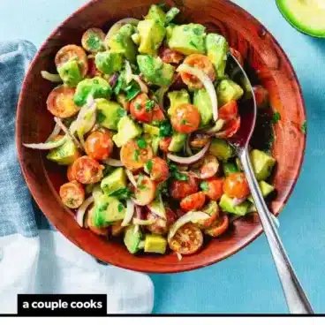 Another variation on this avocado salad: our Avocado Corn Salad! This one features a quick trick: using purchased pico de gallo to cut down on the chopping time. You also don’t need to make a dressing, which makes it even faster and cuts back on the calories. We love it just as much! (Or more?) Go to this Avocado Corn Salad recipe.