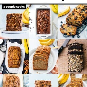 Here’s a healthy banana bread recipe, made with no refined flour and lightly sweetened with maple syrup. And it actually tastes great! This riff on our Healthy Banana Muffins is lightly sweet and fluffy, made with oats and bananas in a blender.