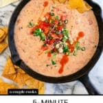 This recipe happened by accident. That’s where many great recipes come from, right? Happy accidents. From this most recent accident came our famous 5-Minute Bean Dip recipe! It’s not superlative when I say it might be the very easiest recipe we’ve ever created. Beans, salsa, and cheese come together into the creamiest, gooiest piping hot mess. Dunk in crunchy chips and it tastes remarkably like the queso from your favorite Mexican joint. A 3 ingredient recipe, the flavor is more irresistibly complex than you’d imagine. But to really understand the magic here: you’ve got to taste it.
