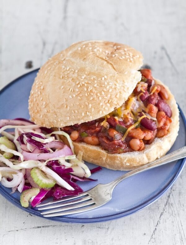 Why not make beans into a meatless sloppy Joe recipe? These fast and easy vegan Sloppy Joes are tangy, sweet, and savory all at once! The filling features pinto beans and kidney beans. Serve with a tangy slaw.