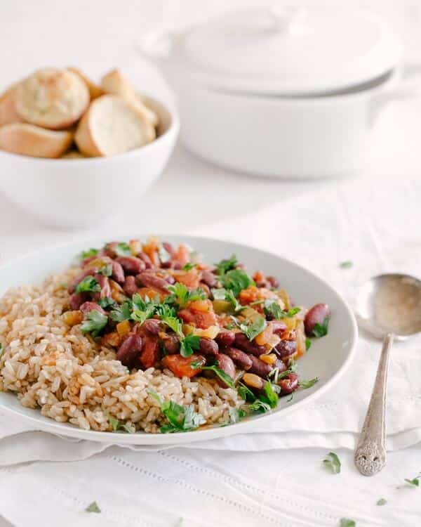 This vegetarian red beans and rice recipe is a tasty, budget-friendly meal with ingredients that are accessible in most supermarkets! Zesty and nutrient-dense, it’s full of red beans, legumes, and Cajun spices. (Also try Vegetarian Gumbo with Red Beans.)