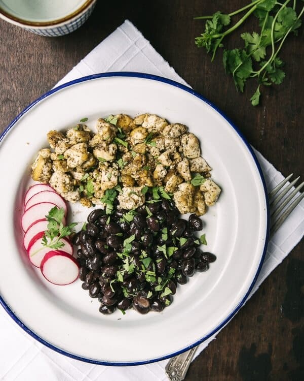 - Chop the cilantro for the garnish. Serve the black beans warm with rice and garnish with chopped cilantro.