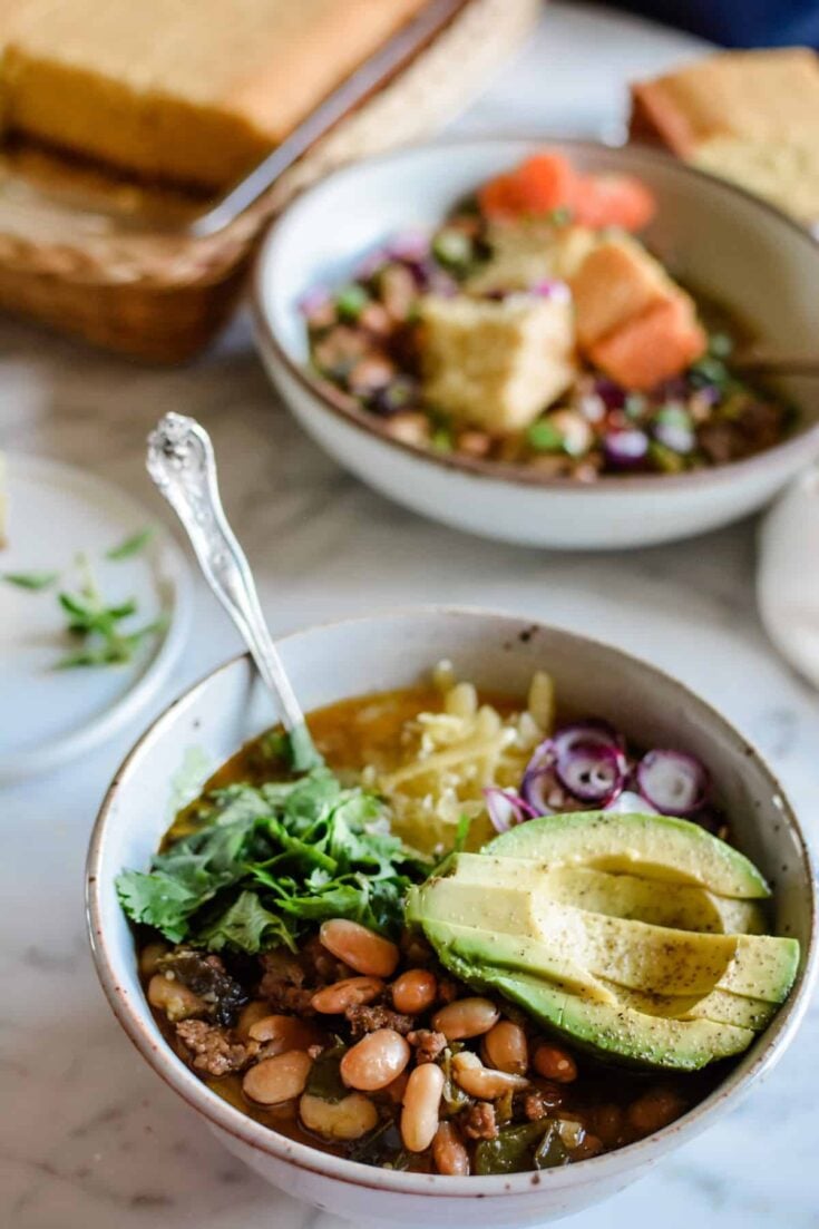 Adding green tomatoes to chili is the perfect match! Their acidity brightens the dish and adds a unique twist. They work well alongside poblano peppers and pinto beans.
