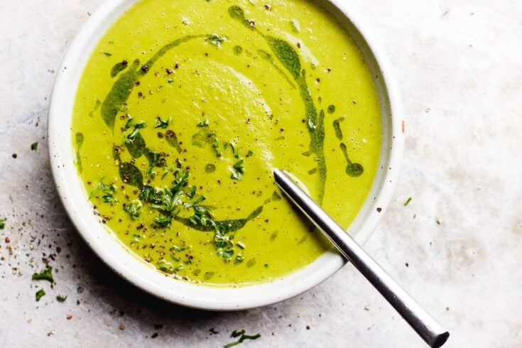 Roasting the green tomatoes with onions and garlic mellows their tartness while bringing out their natural sweetness. This would be great with crusty homemade bread for dipping.