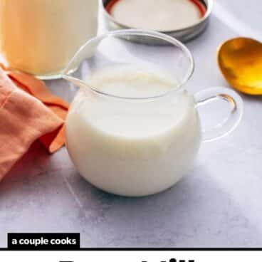 - Oat milk or almond milk: These non-dairy milk alternatives work similarly to dairy milk in baking and recipes.