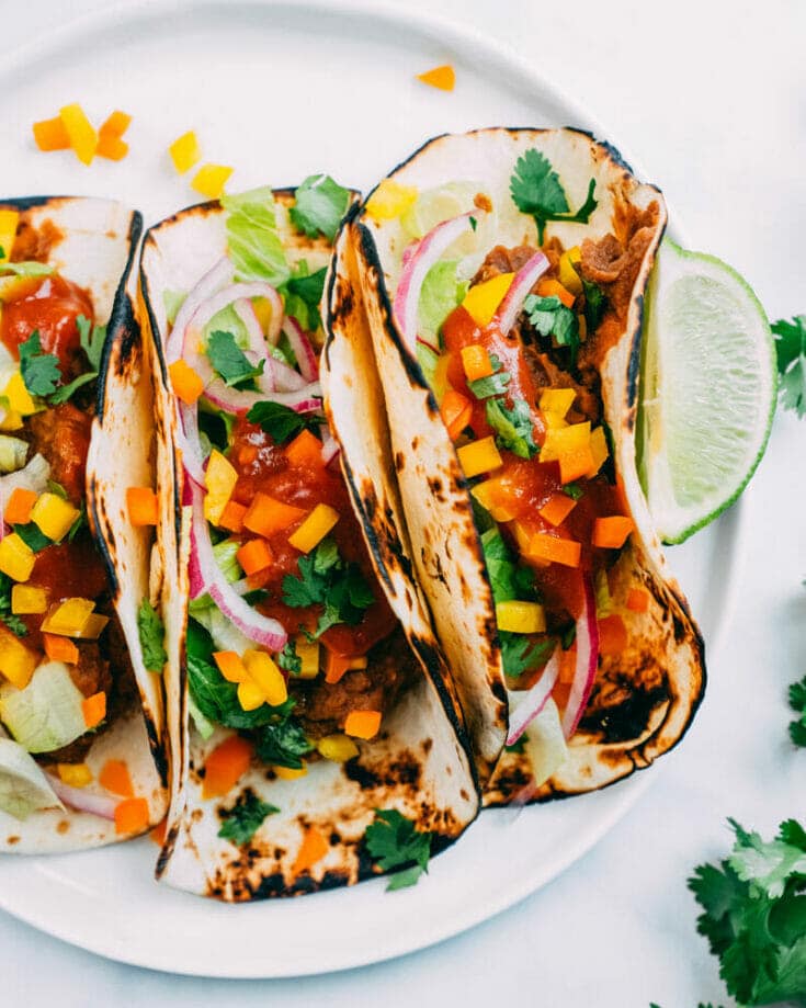 All of our 10 best vegetarian tacos below are not considered “authentic” or traditional tacos: they’re plays on the concept of delicious flavors and textures inside a tortilla. Keep reading for how to make tacos, and our 10 best vegetarian tacos recipes!