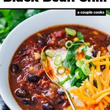 This black bean chili is our new favorite, but we’ve got lots of other chili recipes for the season! Here are a few to try: