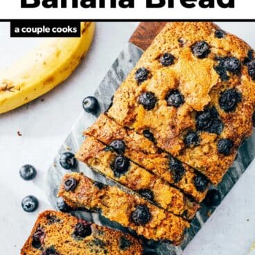 Want to make this blueberry banana bread recipe vegan? Replace the eggs with flax eggs: a simple mix of flax and water that you can make at home. Want gluten-free? Add blueberries to this Gluten Free Banana Bread (toss them with a bit of gluten free flour first).