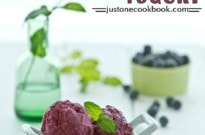 This past weekend, the Bay Area was really warm close to 90F so we enjoyed my frozen stash – 2 kinds of frozen yogurt and Green Tea Ice Cream (the most frequently appeared ice cream flavor in my freezer). The blueberry frozen yogurt came out really delicious and refreshing by using fresh blueberries. If your blueberries are not as sweet, then consider adding a little more sugar or honey before churning.