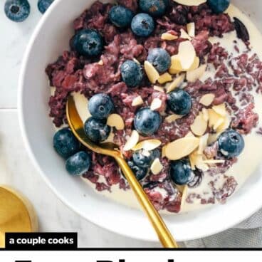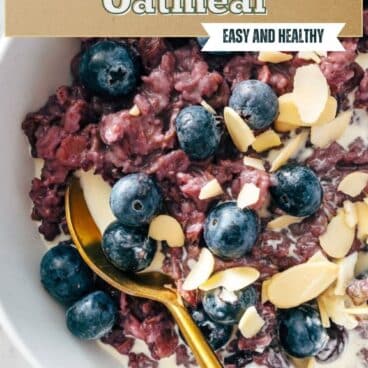 *Frozen blueberries can tend to bleed their color, which is not desirable for baked goods. But since you do want purple blueberry oatmeal, it’s the perfect place to use frozen berries! You do not need to thaw them before using: the heat of the pan will defrost them quickly.
