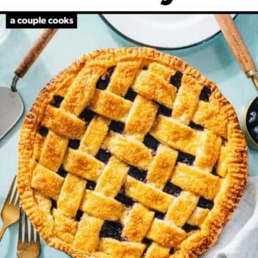 This blueberry pie recipe stars a luscious berry filling encased in a golden lattice pastry crust. It’s our family favorite recipe, perfect for summer cookouts and barbecues. Here are the tricks to the best pie!