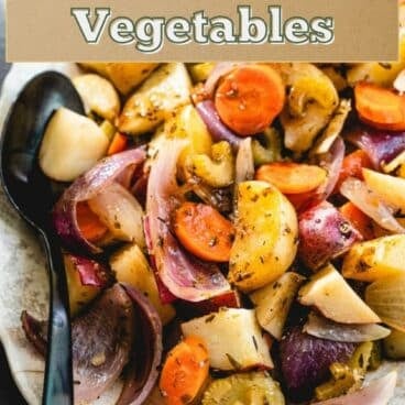 How do these braised vegetables turn out? Tender, savory, and homey, infused with herbs and with heightened flavor from those tangy pan juices. They taste like they’ve been roasted with a chicken, but there’s no meat to speak of! It’s great for a cozy, hearty meal, be it meatless or served with a traditional meaty entree. It’s a healthy, whole food plant based (WFPB) side dish that’s full of so much flavor, it pleases everyone. Here are some great ways to serve these braised vegetables (outside the traditional roast):