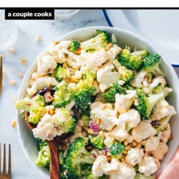 Pine nuts can be expensive, but they add a unique flavor to this broccoli cauliflower salad! If you can find them, it’s well worth it. Here are a few notes: