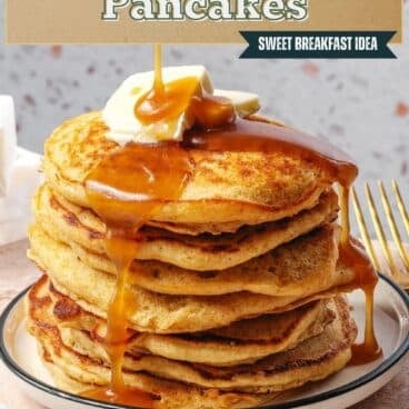 This brown butter pancakes with maple caramel recipe is vegetarian. For vegan, use a flax egg, non-dairy milk, and coconut milk for the caramel. For gluten-free, try our almond flour pancakes with brown butter.