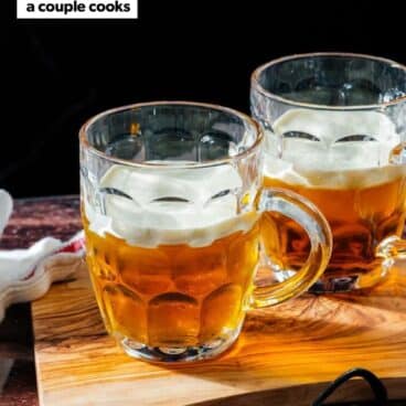 Of course if you’re serving butterbeer for a party, you can use disposable glasses or cups of your choice. Keep in mind the finished drink has about 1 ¼ cups volume with about 1-inch extra room needed for the foam.
