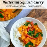 This butternut squash curry is an easy plant based dinner that’s vibrant and full-flavored, starring Thai red curry paste and coconut milk.