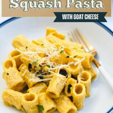 Everyone will love this cozy butternut squash pasta! It’s covered in a creamy sauce blended with garlic, spices, and goat cheese.