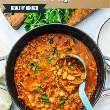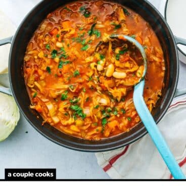 This cabbage soup recipe is hearty and healthy, featuring white beans, loads of veggies, and a super flavorful broth. It’s a great way to use up green cabbage, and makes a warm bowl for cozying up to during soup season.