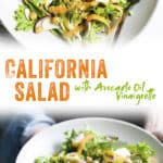 This California Salad with Avocado Oil Vinaigrette was created in partnership with DeLallo. All opinions are our own.
