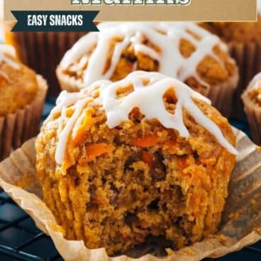 This carrot cake muffins recipe is a showstopper! The muffins are moist and spiced, topped with a tangy cream cheese drizzle.