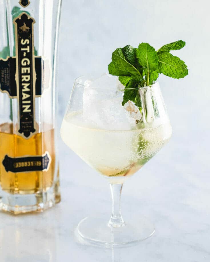 Here’s a drink that’s made for celebration: a St Germain champagne cocktail! It’s sophisticated and refreshing: floral, botanical, tangy, and bubbly all at once. If you’ve never purchased a bottle of St Germain, now’s the time! It's a liqueur made with elderflowers, the small white flowers of an elderberry plant. This bottle of fancy liqueur should be part of your alcohol arsenal: it's perfect for cocktails of all kinds! But this particular champagne cocktail is our favorite.