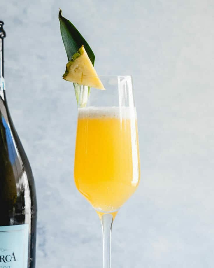 Here’s a champagne cocktail that’s tropical, fruity, and bubby all at once: the Pineapple Mimosa! This spin on the classic brunch cocktail might be even better. Sweet pineapple juice is a unique offset to crisp, dry champagne. The best part? Creamy coconut milk makes a frothy topping so it looks like the bubbles never die!