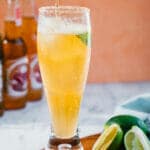 The Chelada is a Mexican beer cocktail that’s easy and refreshing! This irresistible drink pairs lager with lime juice and a salt rim.