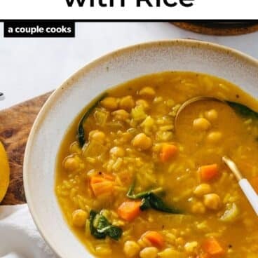 Tender grains of rice make for a satisfying thick body to the turmeric and ginger-infused broth, with a punch of lemon zest to brighten each spoonful. It’s got the cozy nostalgia of canned soup, but it’s fresh and homemade! This healthy soup made a splash over here: the whole family loves it.
