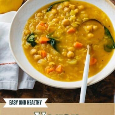 Here’s a cozy soup that’s made of healthy veggies that taste bright and restorative: this Chickpea Soup with Rice! It’s similar to chicken and rice soup, except it’s made with plant-powered chickpeas instead.