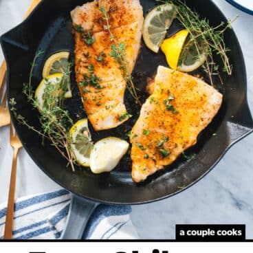 Chilean sea bass is one of the most expensive fish dishes on a restaurant menu, and one bite tells you why! The tender fillet has a succulent, buttery texture that tastes positively glamorous. If you’re lucky enough to score yourself a fillet or two, here’s the recipe for them. Lightly season and pan fry the fillets until the exterior is golden and crisp, then season with garlic, butter, lemon, and herbs. This simple treatment lets the rich texture of this luxurious fish shine through! Pair it with a few sides and it’s a restaurant-quality dinner recipe with little effort.