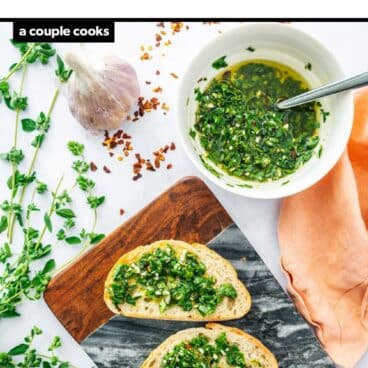 This chimichurri recipe is full of bright, garlicky flavor! This classic Argentinian sauce is ideal with steak, fish, vegetables and more.