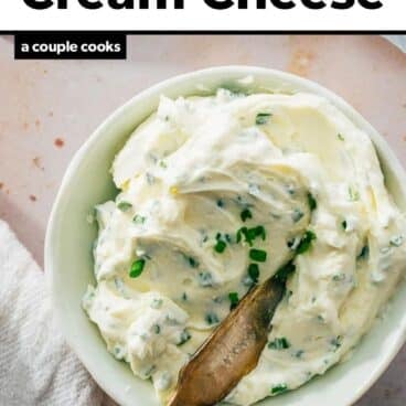 If you like, you can make whipped cream cheese first for this recipe! Whipped cream cheese has an airy, light texture that’s even more spreadable than the standard. All you have to do? Mix the cheese with ½ tablespoon milk in a food processor or stand mixer, stopping and scraping as necessary. You can also simply use a whisk if you prefer! Go to Whipped Cream Cheese.