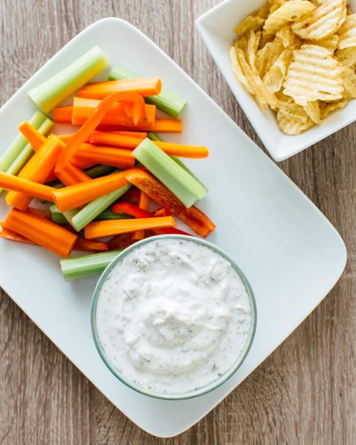 Another chives recipe at the top of our list: chive dip! Chives are often paired with sour cream, but here we've used Greek yogurt for a lighter spin. This creamy dip is only a few ingredients: yogurt, garlic, chives, olive oil, and salt and pepper. But the flavor is stunning and fresh: perfect for dipping veggies or potato chips.
