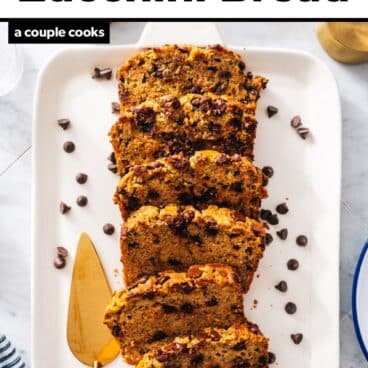 If you’d like, you can omit the chocolate chips from the top. This allows you to remove it from the pan sooner and you can eat it warm! Otherwise, cool it in the pan for 2 to 3 hours before attempting to remove it. Don’t want to wait? Turn it into zucchini chocolate chip muffins instead!