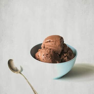 The secret to this vegan dark chocolate ice cream is…full fat coconut milk! And in this case, the dark chocolate flavor covers it so it’s not too coconut-y, just rich and refreshing. Cornstarch also helps to give the vegan ice cream more of a body. And simmering the mixture until it is thick and using liquid sweetener like agave or maple syrup also helps for a creamy texture. And the flavor? Though it’s made of coconut, this version had no trace of coconut taste to my palate, instead overwhelmed by the burst of dark chocolate ice cream flavor.