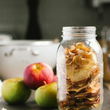A final note: there’s one problem with these apple chips. We can eat an entire jar in a fraction of the time it took to prepare them! Keep in mind that the serving size is relatively small, so it might take a few batches to build up a good stash. Or, just hoard these apple chips and savor them!