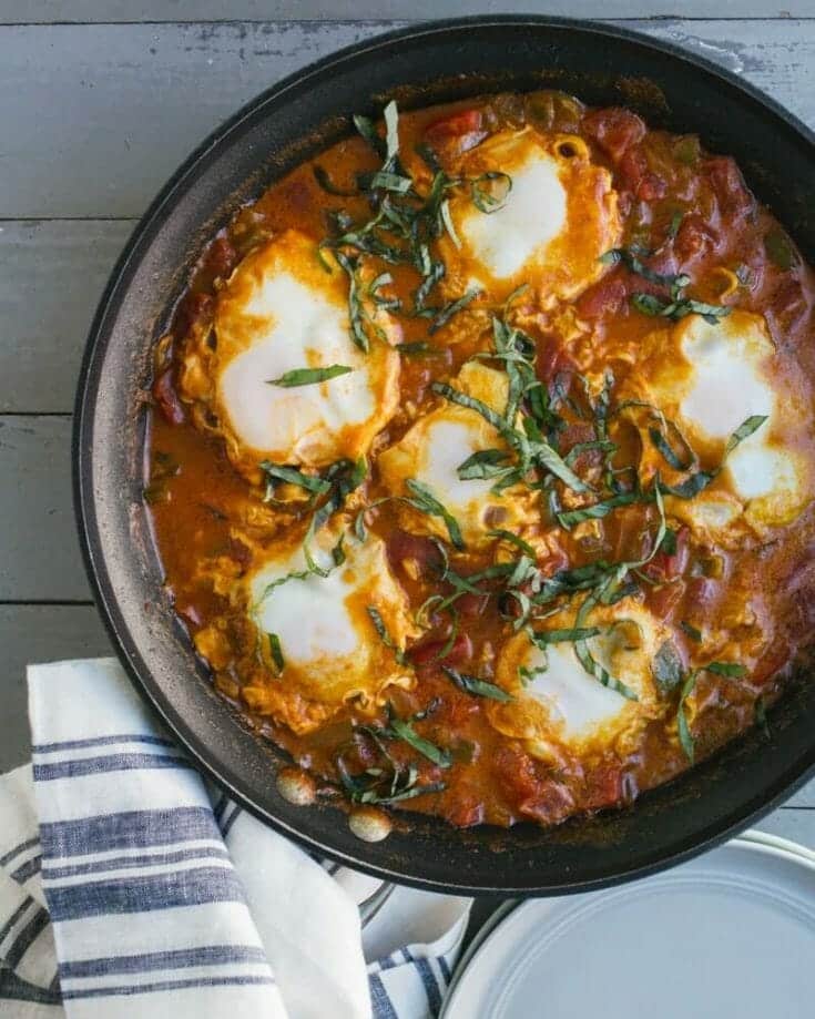 Here's a coconut milk recipe that usually doesn't contain the plant-based milk: shakshuka! Shakshuka is a dish of eggs poached in a tomato sauce that originates from Middle Eastern and Mediterranean regions. But this spin is a coconut curry flavor, and adds coconut milk and curry powder. It's the perfect mashup!