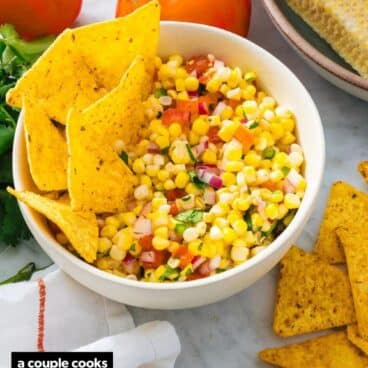 It’s simple to make this corn salsa recipe! Fresh and zesty, it’s perfect with tortilla chips, tacos, and more.