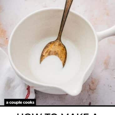 Here’s how to make a cornstarch slurry! Use this mixture to thicken sauces, soups, stews and more to a glossy consistency.