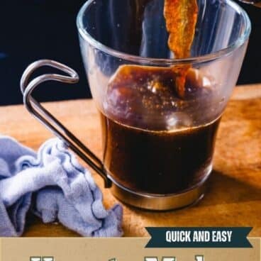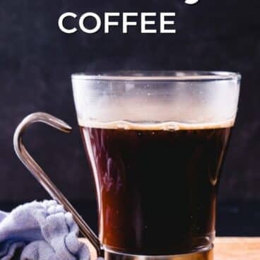 - Strain out the grounds: If you don’t have a strainer, dribble a bit of cold water across the top of the hot coffee, which makes the grounds sink to the bottom*. But this works best with a strainer (or a clean sock!): use it to strain the coffee into a mug. Enjoy immediately.