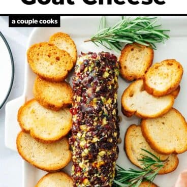 This cranberry goat cheese requires minimal ingredients but goes big on flavor: the ideal combination for any appetizer recipe! The basic idea? You’ll warm the goat cheese to room temperature, then coat it in a mixture of cranberries and nuts. Serve it with crackers or crostini and it’s a quick way to make a fun spread. Here’s what you’ll need: