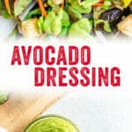 This creamy avocado dressing turns out so, so delicious: it looks brilliant green from the cilantro, and its flavor is tangy, savory, salty, and rich all at once! We served it with this Best Tossed Salad recipe, and it made for the perfect side salad. All the colorful veggies, crunchy homemade croutons and fluffy greens were a fantastic compliment to the creamy avocado dressing!