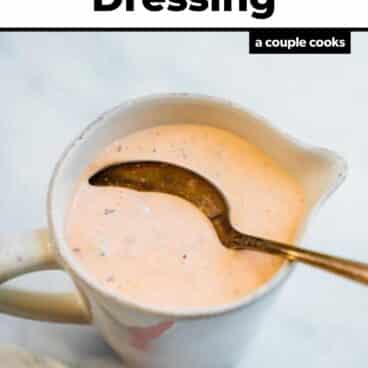 Greek yogurt is our favorite for dips and creamy salad dressings for a few reasons. Here’s why it’s worth grabbing at the store for this dressing: