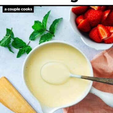 Here’s a creamy dessert sauce every home cook should have in their arsenal: crème anglaise! This French sauce translates to “English cream” and it tastes like pure gold. It’s lusciously creamy, infused with vanilla and just sweet enough for adding a sparkle to treats. Pour it over fresh berries for an instant dessert, or add it to crisps and crumbles, or bread puddings to take them over the top.