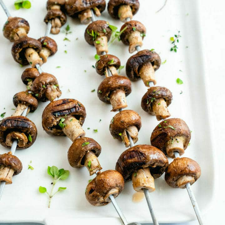 Throw cremini mushrooms onto the grill to make smoky, savory skewers.